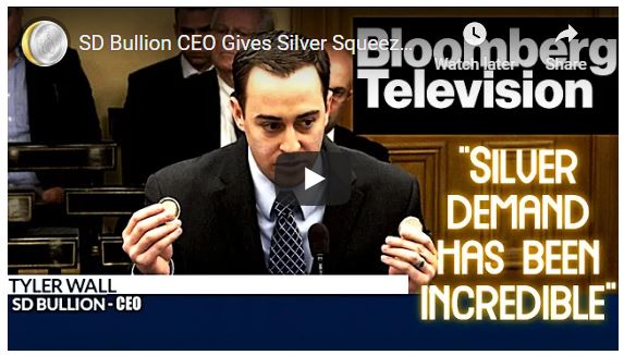 On Bloomberg TV, at approximately 9:00 p.m. EST last night, SD Bullion CEO Dr. Tyler Wall described the state of the physical market. "Pretty much all physical silver is gone, in terms of live inventory. Most items on our website are at a 30% premium, and we cannot source it for much less than that right now."