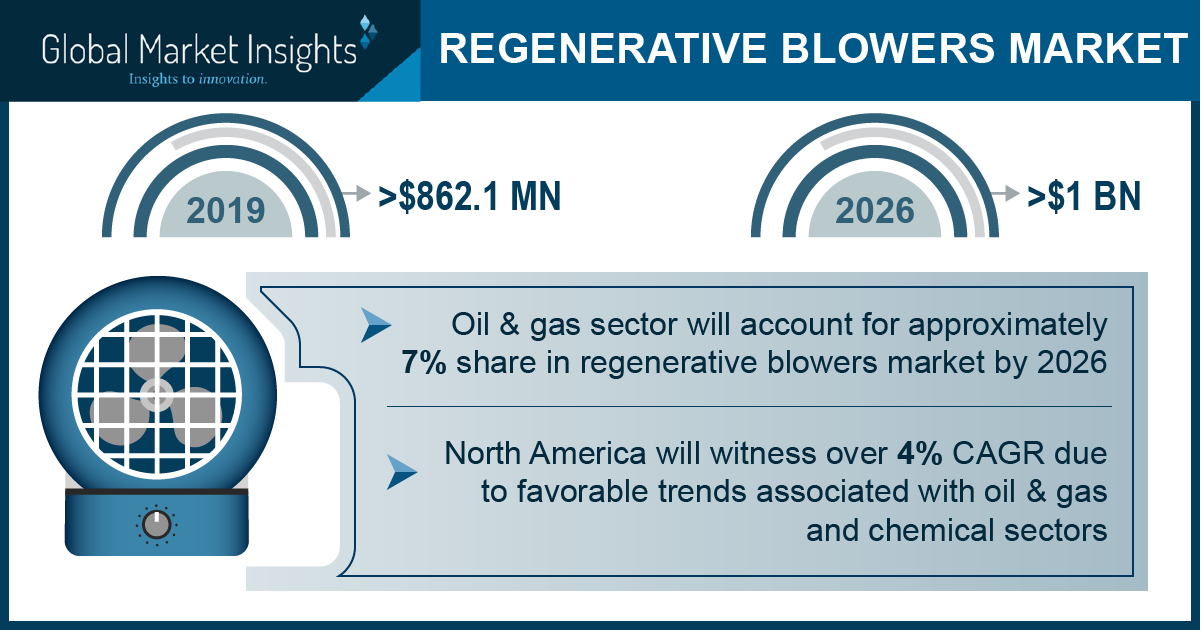 SELBYVILLE, Del., December 9, 2020 (Newswire.com) - Global Market Insights, Inc. has recently added a new report on the regenerative blowers market, which estimates the market valuation for regenerative blowers will cross US $1 billion by 2026. Favorable trends associated with the industrial manufacturing sector will augment the industry expansion.
