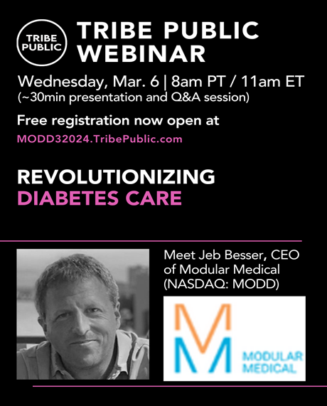 Registration Is Now Open for Tribe Public's Webinar Event "Revolutionizing Diabetes Care" Featuring Modular Medical CEO on Wednesday, March 6, 2024