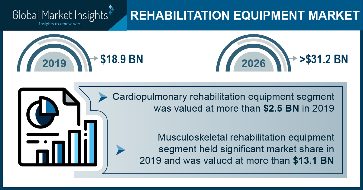 SELBYVILLE, Del., January 7, 2021 (Newswire.com) - According to the latest report “Rehabilitation Equipment Market by Product (Cardiopulmonary Rehabilitation Equipment, Musculoskeletal Rehabilitation Equipment, Neurological Rehabilitation Equipment), Regional Outlook, Price Trends, Competitive Market Share & Forecast 2026”, by Global Market Insights, Inc., the market valuation of rehabilitation equipment will cross $31.2 billion by 2026.