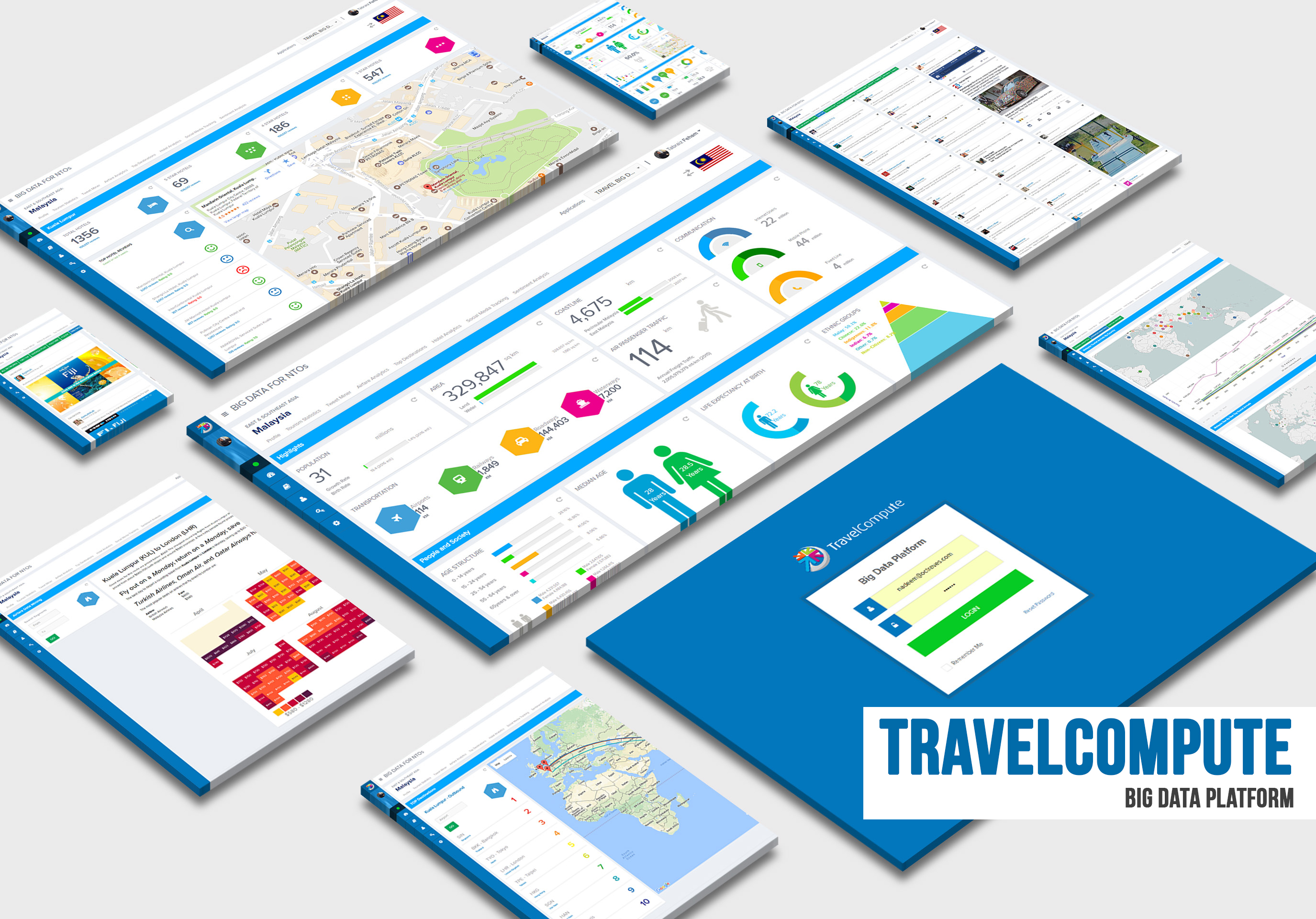The TravelCompute Travel & Tourism Big Data Platform integrates data from various public & private sources, collects proprietary data, conducts social data mining and integrates with several industry stakeholders in an automated way. The platform then processes the data and renders meaningful insights based on artificial intelligence and machine learning based big data technology for the national & local tourism organizations, travel management companies, destination management companies, hoteliers, airlines and other travel related companies.