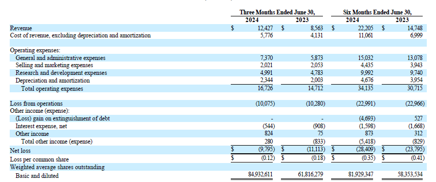 Improved Adjusted EBITDA from a loss of $7.2 million for Q2 2023 to a loss of $5.8 million for Q2 2024