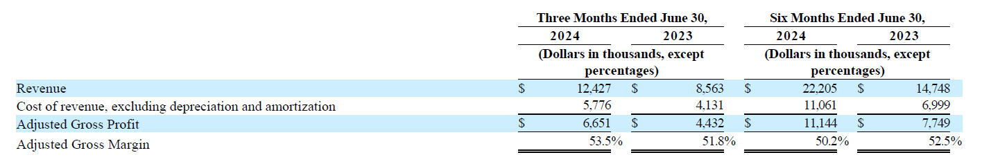 Adjusted Gross Profit | $ | 6,651 | $ | 4,432 | $ | 11,144 | $ | 7,749 | ||||||||