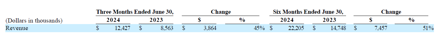 Q2 2024 gross revenue increased 45% to $12.4 million compared to $8.6 million in Q2 2023