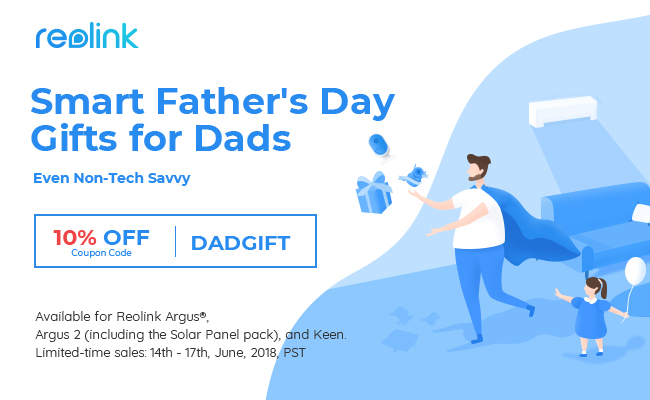 Hong Kong, June 14, 2018 (Newswire.com) - Reolink today launches its annual Fathers’ Day Sales (available during June 14th – 17th 2018, PST) for its wire-free security cameras, enabling customers to get smart & special gifts for their dads with the best deals (10% off coupon code: DADGIFT).