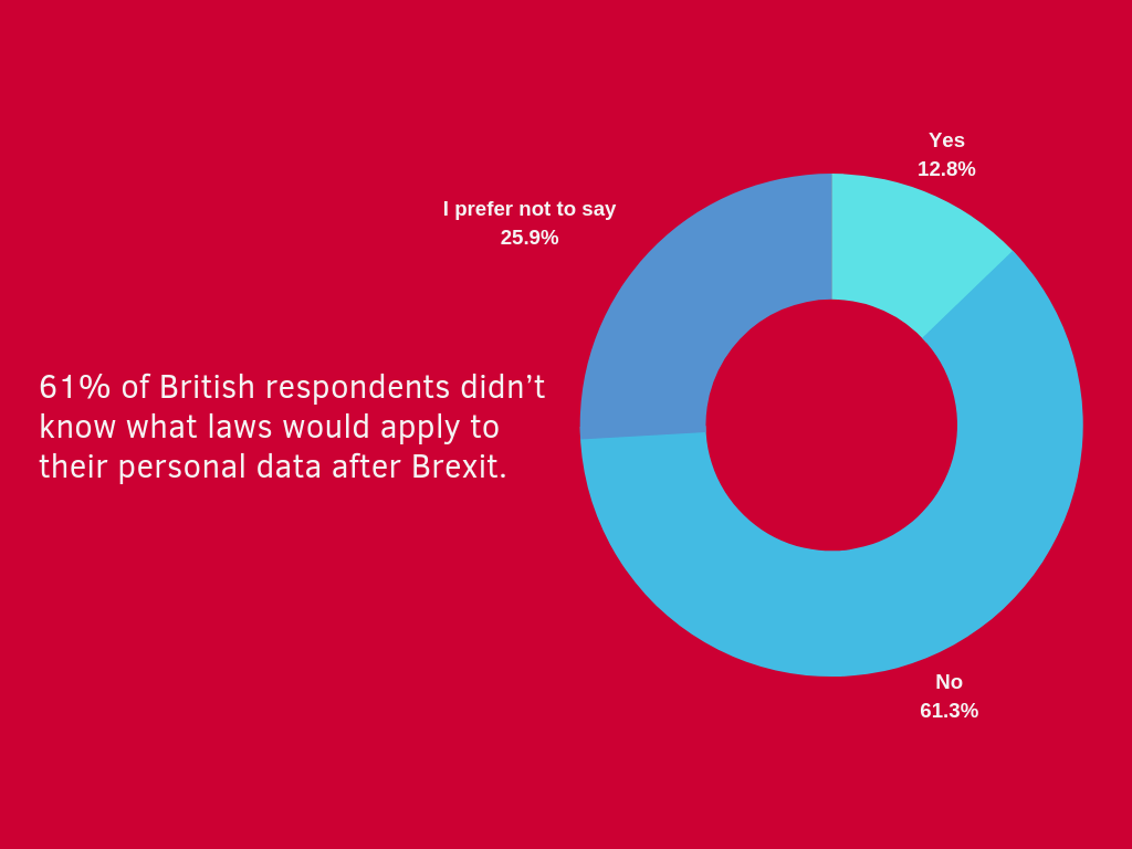 According to the findings, as much as 61% of British respondents didn’t know what laws would apply to their personal data after Brexit. Another 62% weren’t aware of how their data would be protected after the UK left the EU.