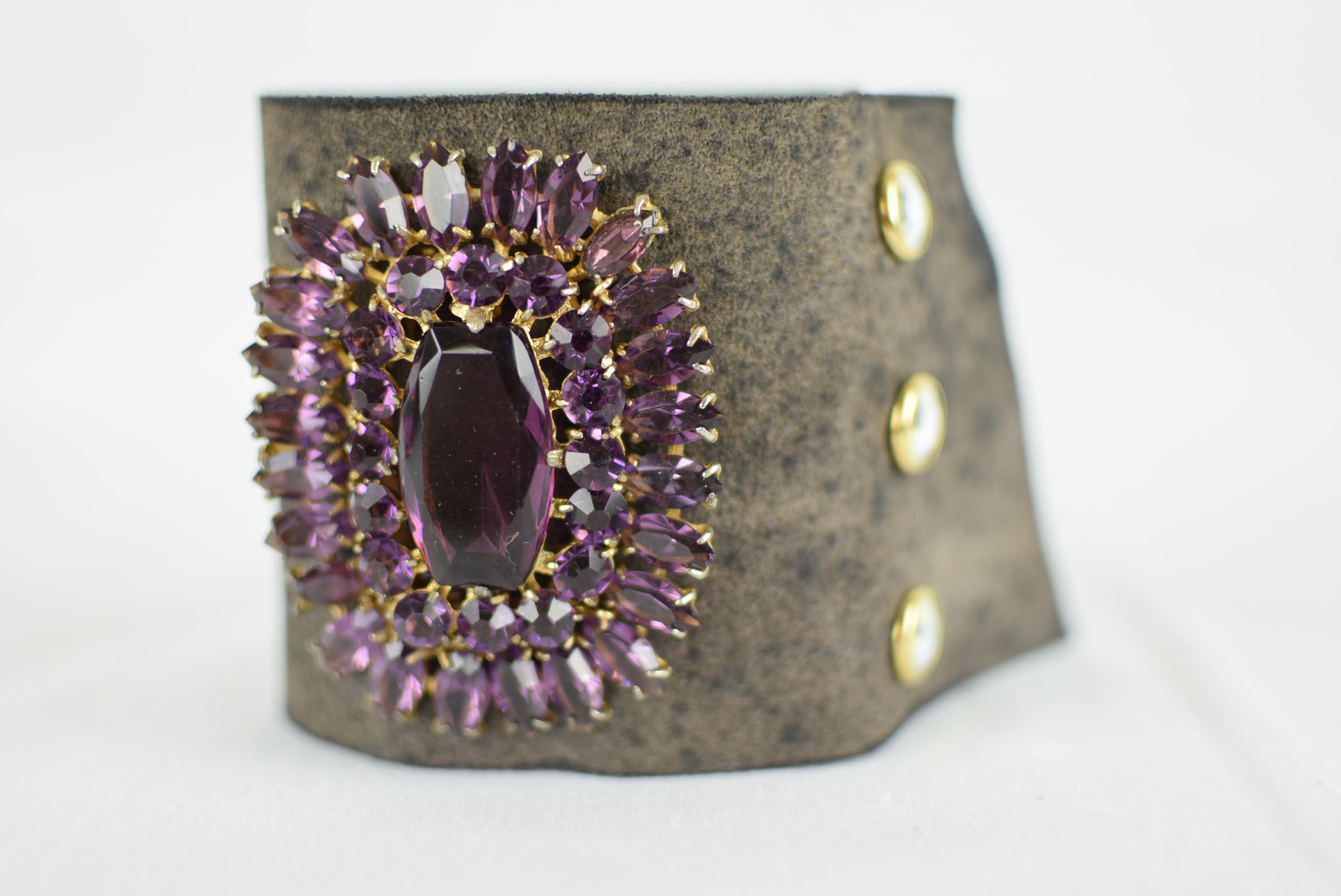 “It took several years to curate the essential Victorian pieces that would elevate the collection,” said Designer, Lacy Schoen. Unlike Schoen’s prior collections, The Victorian Runway Collection includes a the release of new leather cuff design that features soft, pliable layers of leather, cowhide and brass buckles closures. “The soft leather and cowhide embrace the Victorian brooches. The cowhide cuffs connote a down to earth contemporary vibe, while the brooches exude sophisticated, classic beauty. The elements dance with each other in each piece,” said Schoen. The collection also features some cuffs with dyed, spotted suede – a stunning new interpretation in ReviveAmor collections.