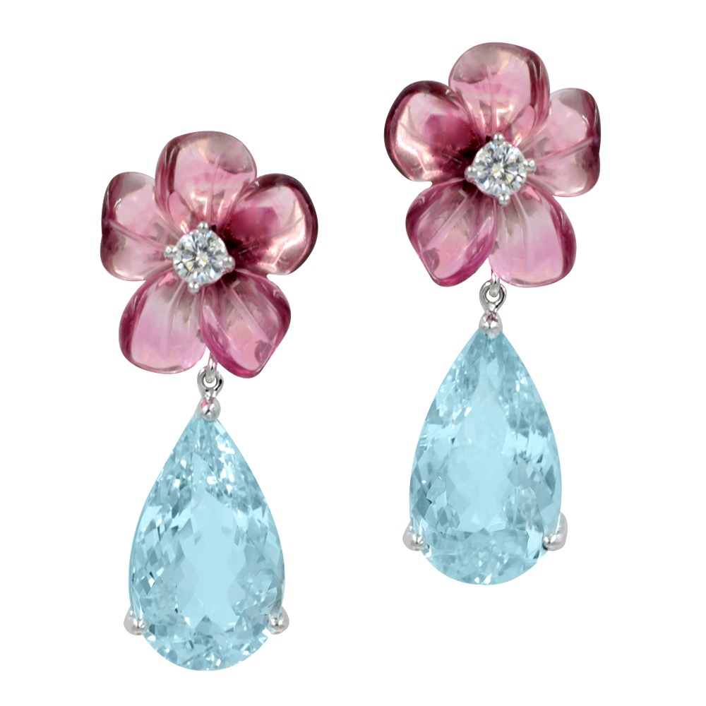 New York, NY, May 30, 2016 (Newswire.com) - The Rina Limor garden is in full bloom! The jewelry designer introduces fresh floral styles in her new collection known as Fiorina. Earrings, rings and pendant necklaces feature flower designs inspired by the blossom of a “wild rose”- the five-petal flower that grows naturally and abundantly across flower fields. The flowers are hand carved from aquamarine, tourmaline and peridot gemstones and combined with complementing drop shape gems of morganite, blue topaz and doublet opals for a fresh, colorful and sophisticated look. Some styles are accentuated with diamonds and sapphires that add elegance to their stunning beauty.