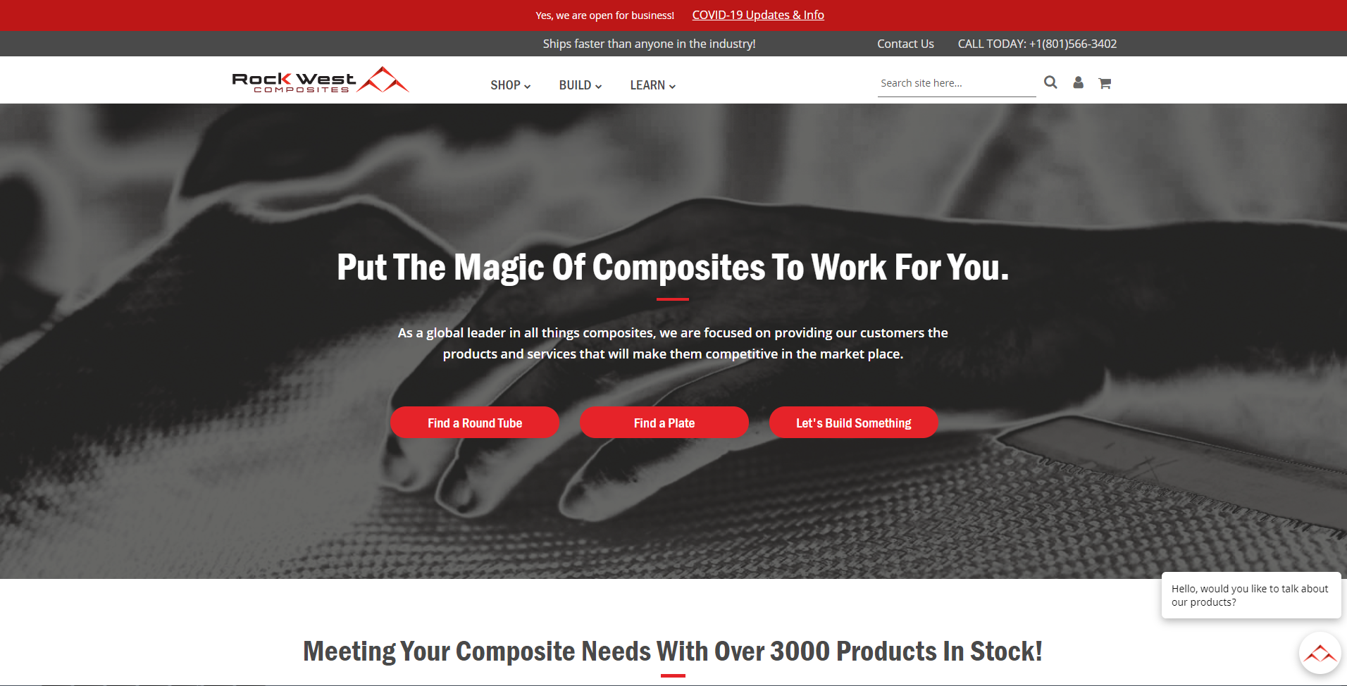SALT LAKE CITY, May 13, 2020 (Newswire.com) - Rock West Composites, a global leader in providing easy access to advanced composite materials and products, has just launched a redesigned website featuring fully updated information and a range of new tools to help customers find what they are looking for quickly and easily. The site launched on May 7, 2020.