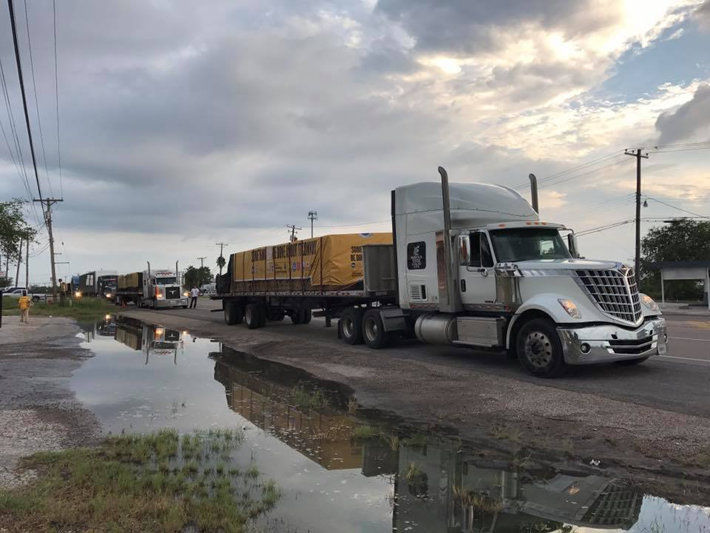 ROCKPORT, Texas, September 29, 2017 (Newswire.com) - The "Something CAN Be Done About It" convoy, carrying more than 200 tons of building supplies, arrived in Rockport this morning. Police and fire trucks escorted the eight big rigs to Aransas County Airport.