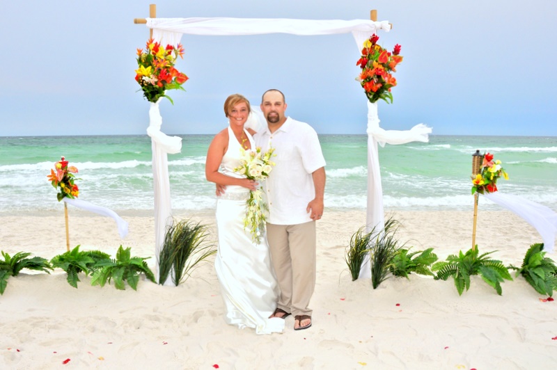 Destin Beach Florida is a magical place and a perfect way to begin your lives together. The Romantic beach wedding Package is a perfect way to put it all together. It includes full set up of Arbor in your choice of style. You'll also walk down a decorated aisle. There are gorgeous ferns of grass spread around the Arbor.