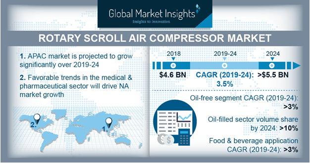 Rotary Scroll Air Compressor Market Will Grow at 3% CAGR to Cross $5.5 Billion by 2024: Global Market Insights Inc.