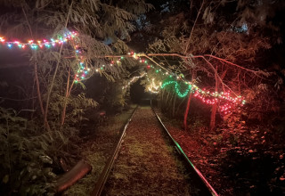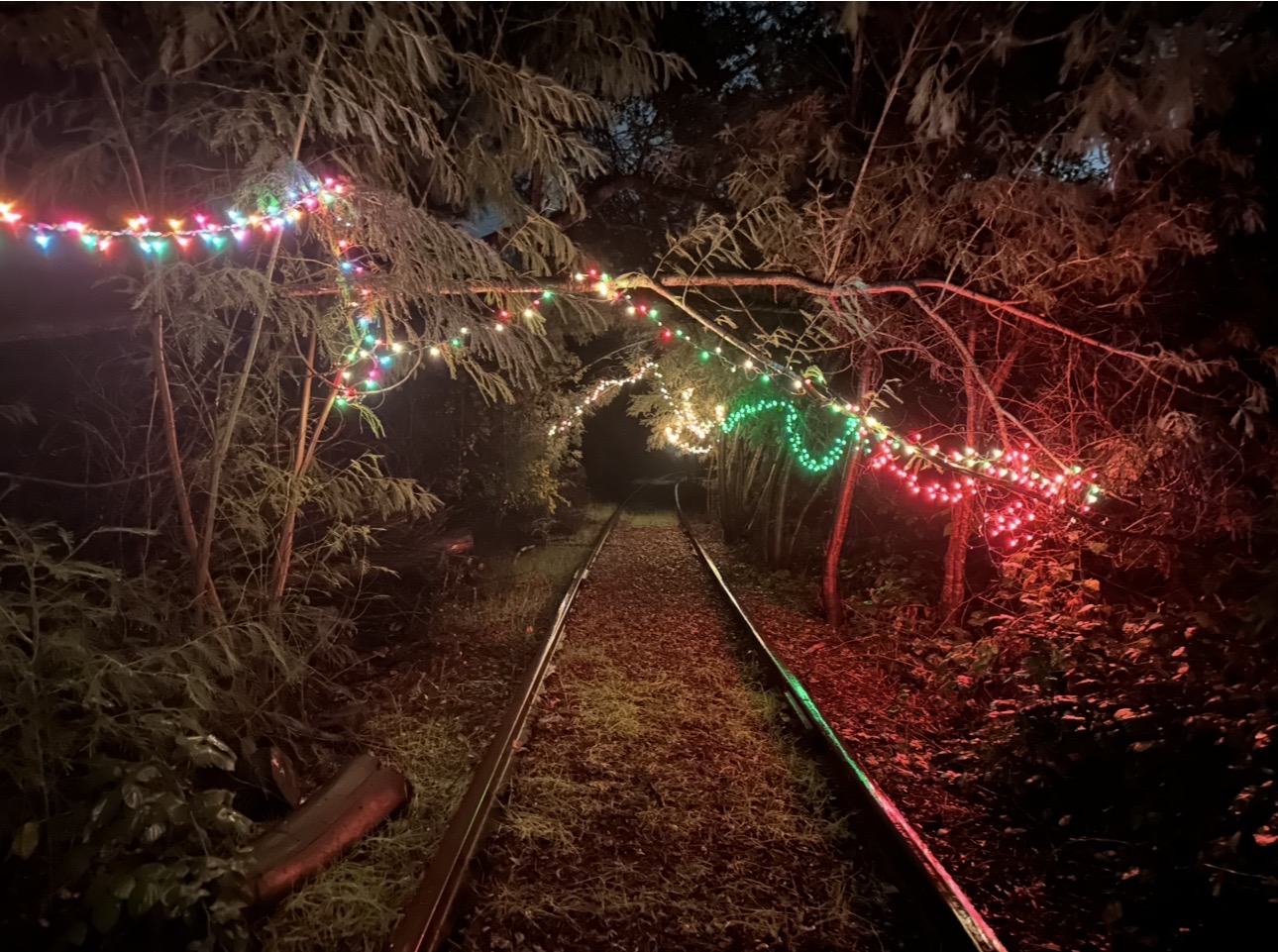 Experience: Holiday-themed railbike rides through a festive nighttime setting