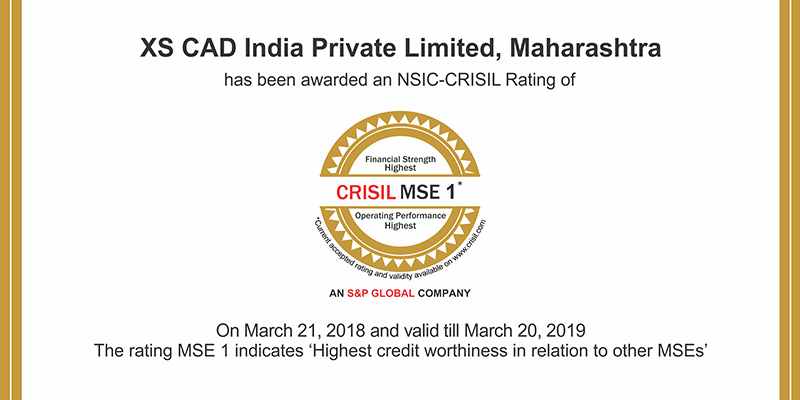 NEW YORK, May 22, 2018 (Newswire.com) - For the second year running, XS CAD was accredited 'MSE 1' rating by CRISIL, an S&P Global Inc.-owned company. The MSE 1 credit is the highest creditworthiness in relation to other MSEs (micro and small enterprises).