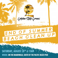 Golden States Greens is hosting an end-of-summer beach cleanup in partnership with Purpose First on Aug. 28 that starts on the boardwalk, south of the Pacific Beach pier, at 11 a.m.