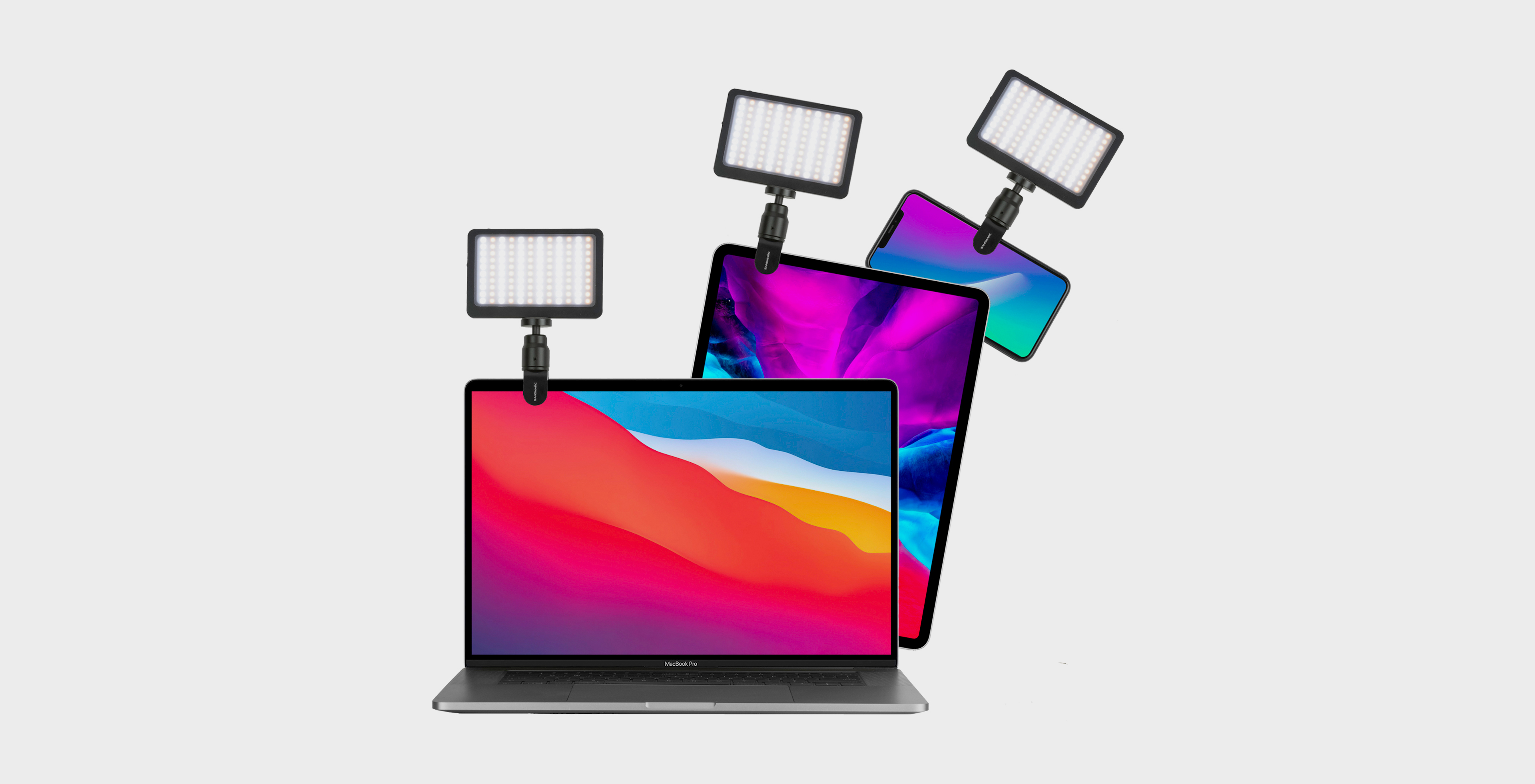 Included is a patent-pending versatile mount that allows using your Prolight with a MacBook, Laptops, iPad and iPhone. The mount is fitted with a rubber padding on both sides to avoid the risk of any damage to a screen.