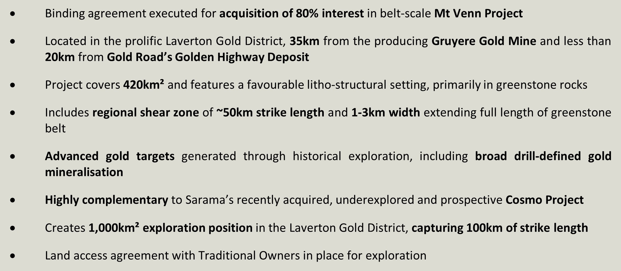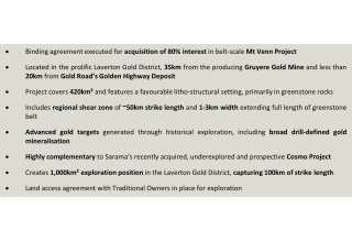 Sarama Resources Advances Mt Venn Gold Project Acquisition