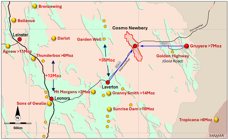 , June 17, 2024 (Newswire.com) - Sarama Resources Ltd. ("Sarama" or the "Company") (ASX:SRR)(TSX-V:SWA) is pleased to announce that it has signed a non-binding Memorandum of Understanding ("MOU") with Cosmo Gold Limited ("Cosmo") and Adelong Gold Limited ("Adelong") on 21 May 2024, to acquire rights to the Cosmo Newbery Project (the "Project"), located in Eastern Goldfields of Western Australia, which have historically been highly prospective.