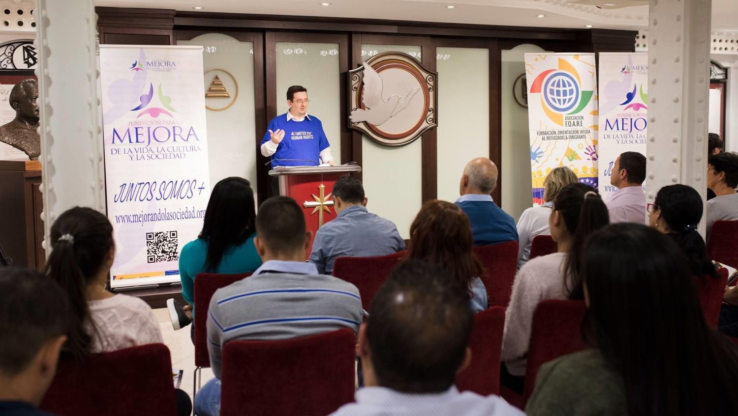 Conducted by Ivan Arjona, Director of the Church of Scientology European Office of Public Affairs and Human Rights, the program was organized by la Fundación para la Mejora de la Vida, la Cultura y la Sociedad (Foundation for the Improvement of Life, Culture and Society) in coordination with Asociación FOARE, a nonprofit that helps political refugees in Spain, and Fundacion VIDA, a nongovernmental organization (NGO) with consultive status to the United Nations Economic and Social Council.