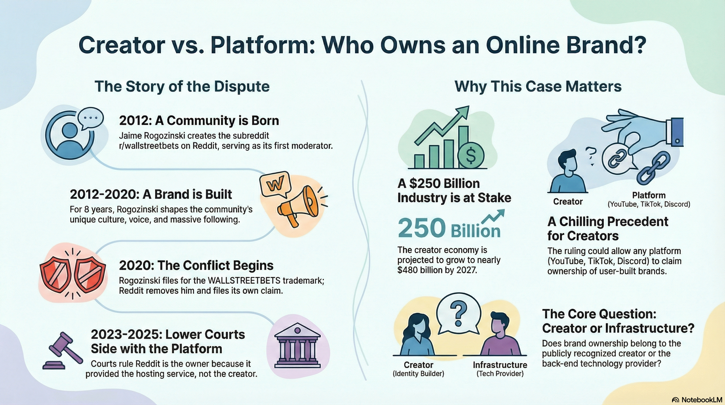 Jaime Rogozinski takes his fight against Reddit to the highest court, arguing that platforms cannot be allowed to seize brands built by creators, setting up a landmark challenge to protect millions of digital entrepreneurs from 'digital eminent domain.'