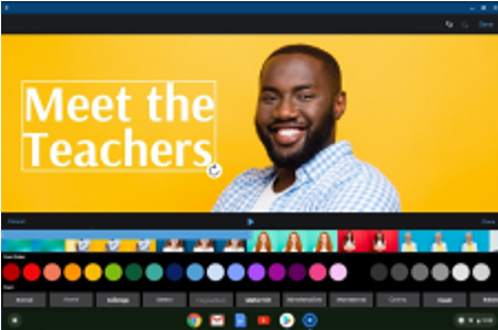 Overlay Editing Tools: Overlay tools are easy to use on the Chromebook Video Editor. Users can add emoticons, rich text, interaction icons, shapes, and more. Overlays add creativity and fun to any video.