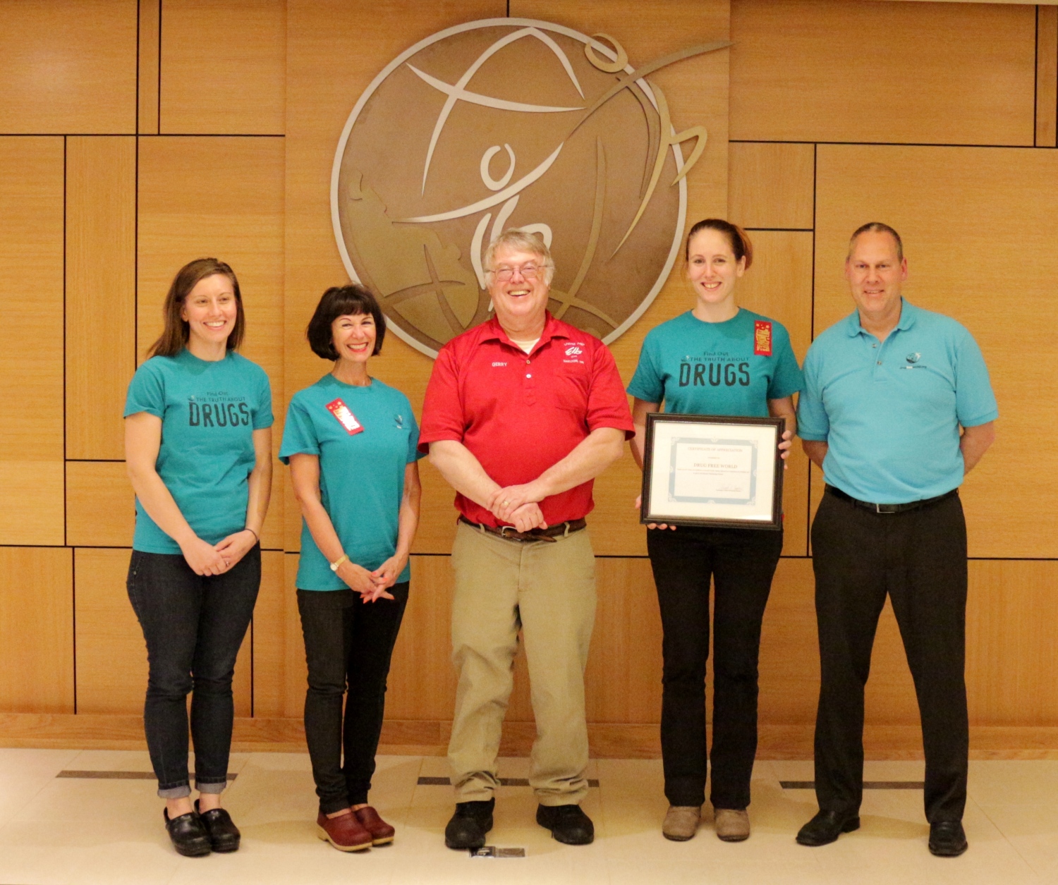Mr. Apple uses the Truth About Drugs program in his work. “I give these materials out at our parent night for driver’s ed. We use this program in our traffic safety education classes and I really appreciate the Drug-Free World for supplying those materials.” He ended his speech by presenting a certificate of appreciation to the Seattle Drug-Free World volunteers.