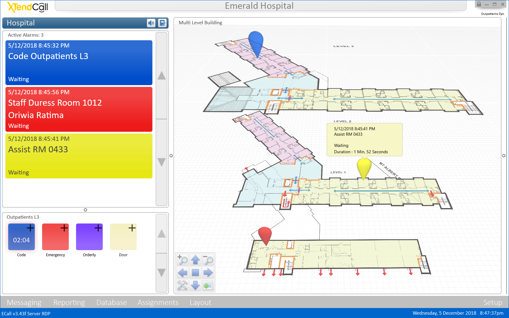 XTendCall™ enables personnel to receive on their mobile devices of choice, accurate facility-wide duress calls with up to room-level accuracy. Event updates are provided in real time when used with Securalert’s™ solutions. Protocols can be automated and communicated in real time for all active events. Easy-to-read large text displays alarms and messages with audible and vibrate functionality. Sound and vibration patterns are determined by the urgency of the alert. XTendCall™ is also equipped with an automatic call-back feature to communicate with enabled audio/mobile devices without having to look up phone numbers or extensions. Alarms can be acknowledged, escalated and even canceled remotely or at the point of origin if so desired. The app indicates to the other users who is responding in the same work area. Alerts and response times are recorded for reporting and team leader followup, optimizing response time and workflow of non-critical managed events or requests.