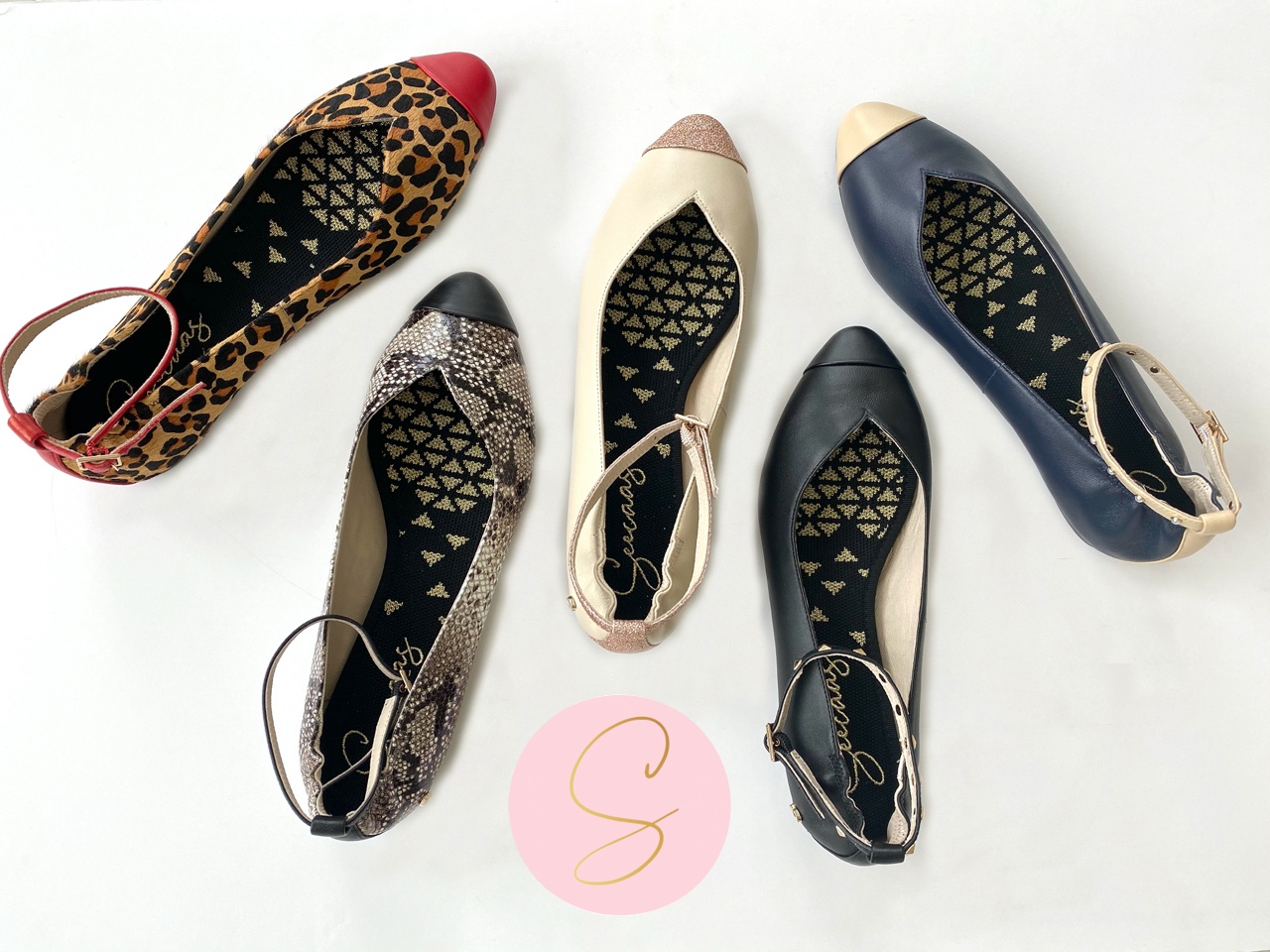 The Ella Flats collection, named after Hensley’s daughter, comes in a number of different styles including leopard, snake-skin, and glitter options. Each style features a classic almond-shaped cap-toe and are all crafted out of 100 percent real leather. The flats also include removable ankle straps for added support.