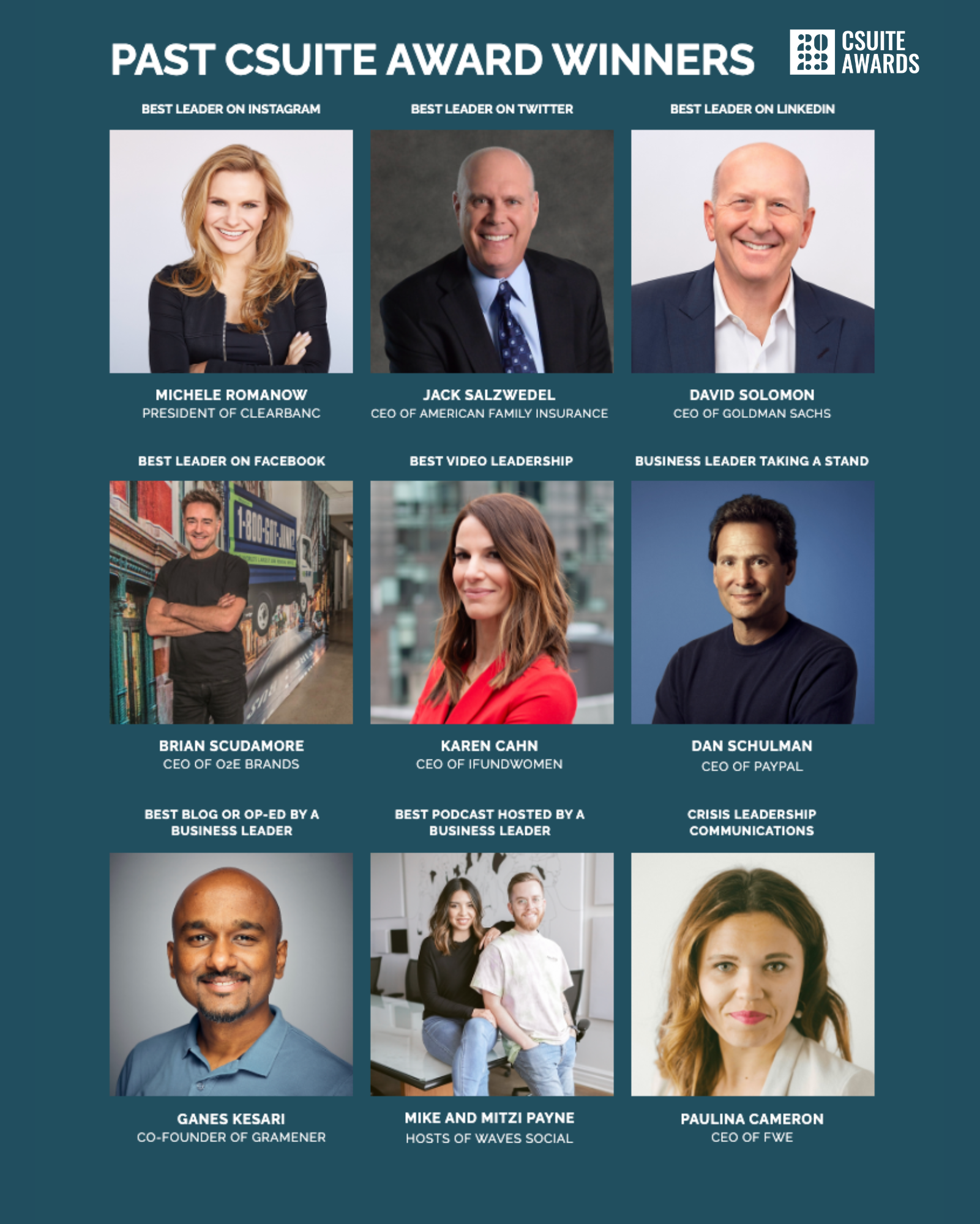 Today's leaders understand the power of social media to share ideas, drive business results and even change the world. The CSuite Digital Leadership Awards — The CSuites, for short — is the first competition of its kind to recognize their impact and achievements on social media and digital channels. Learn more and receive an invitation to apply at www.csuiteawards.com. #2023CSuiteAwards @csuitecontentagency