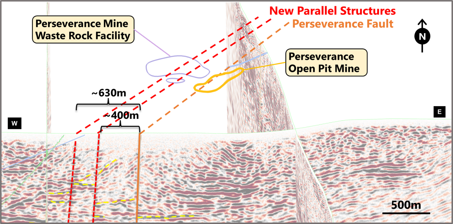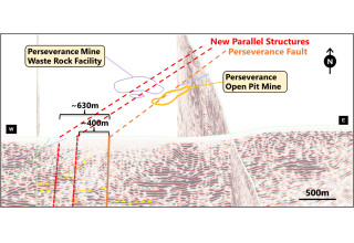 The Perseverance Mine is located on Mining Lease (ML) 6455 and was operated during 2017 and 2018, with an average ore grade of ~3.8 g/t Au sent to the Company's Central Gawler Mill during 2018.4 The latest analysis indicates a corridor of Perseverance Fault-like structures located just west of the open pit.