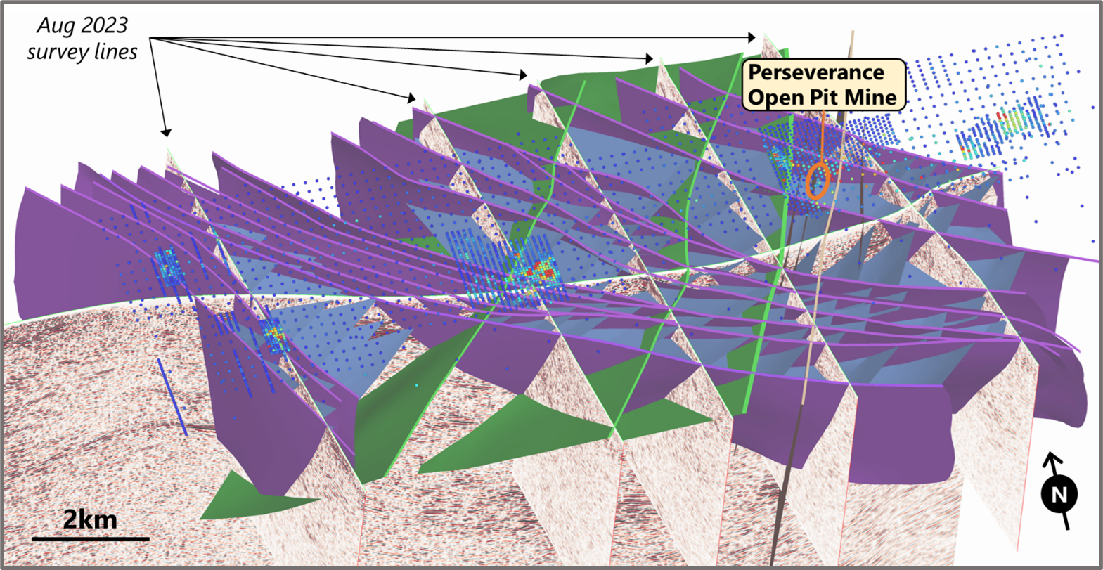In August 2023 the Company completed a new seismic survey over this target area, collecting over 40 line-km of data along 5 lines to develop a higher resolution model of near surface (0-500m depth) structures.3