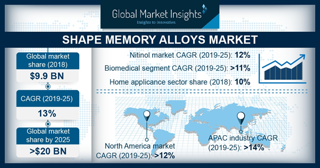 Shape Memory Alloys Market Share to Hit $20 Bn by 2025: Global Market Insights, Inc.