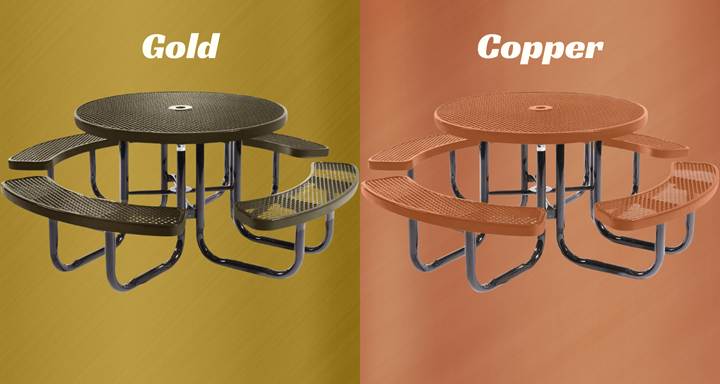 Introducing Rich Bold Metallic Finishes for Outdoor Picnic Tables, Benches, Waste Receptacles & Beyond