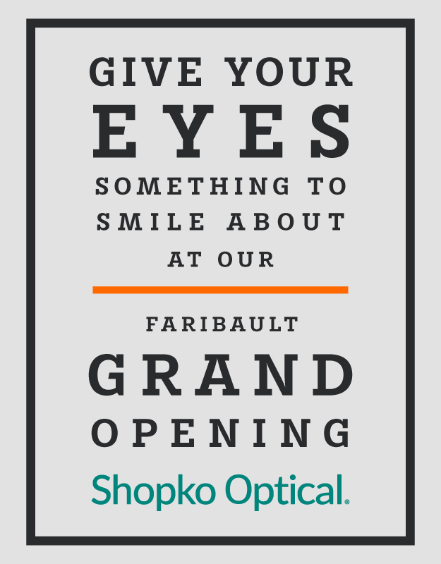 "We are excited to expand our comprehensive eye care services to Faribault," said Russ Steinhorst, Shopko Optical CEO. "With this new location, we can continue our mission of offering quality eye care to patients."
