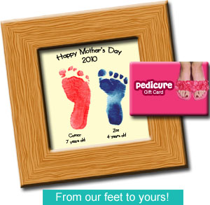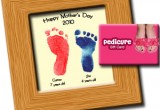 - Feet retreat. Take a picture or stamp of the children's feet and put it in a keepsake frame. Add a pedicure gift card and a note that reads, "From our feet to yours."