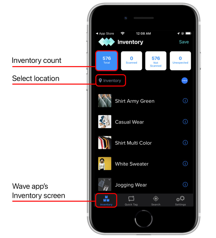 SimplyRFiD makes Wave. Wave is an iOS app connected to a handheld RFID reader that is perfect for retail stores in the 5,000-20,000 item range. Well-equipped Wave RFID inventory systems cost about $3,000 per location.