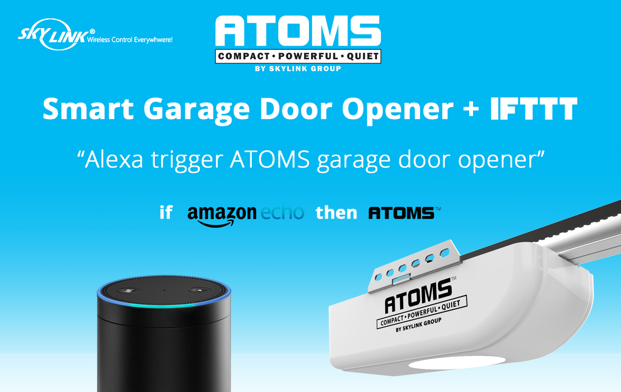 TORONTO, CANADA, October 21, 2016 (Newswire.com) - Skylink, a leading provider of connected home solutions, today announced the ATOMS Garage Door Opener, the first garage door opener compatible with the IFTTT platform. With the latest update, homeowners can seamlessly connect the ATOMS Garage Door Opener through the SkylinkNet Internet Hub to other connected devices on the market including AmazonEcho, Nest®Cam™, WeMo®, and Philips Hue. Additionally, homeowners can run recipes for functions unrelated to other smart devices, bringing advance functionality to the ATOMS Garage Door Opener.