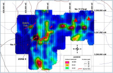 SLAM previously reported gold bearing core intervals from the Maisie vein, including 162.5 g/t gold over 0.2 m and 56.90 g/t gold over 0.5 m, in news releases dated December 13, 2021 and November 22, 2022. The Company also reported a core interval grading 3,955 g/t (127oz) gold over 0.1m from the No. 18 vein. The Menneval soil geochemical survey shows a number of gold anomalies over an area measuring approximately 3,000 meters by 2,500 meters.