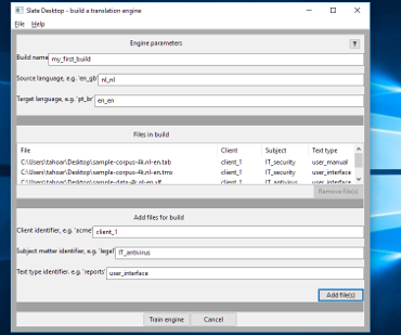 With Slate Desktop, next generation translation professionals learn to convert their translation memories to engines on their on personal computers. This approach ensures client confidentiality and protects translators’ assets. Their choices as professionals determine whether engines are customized to specific products or personalized to a translator's individual style.