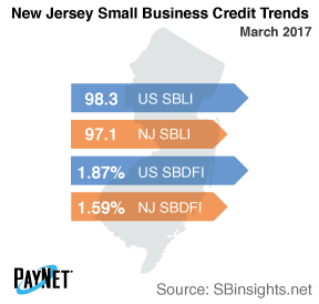 New Jersey's PayNet Small Business Lending Index (SBLI) registered at 97.1, declining 1.4% from the previous month's state level and 1.2% beneath the national SBLI level (98.3) this month. Small business borrowers are behaving more cautiously by reducing investment.