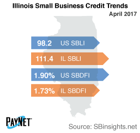 Illinois' PayNet Small Business Lending Index (SBLI) registered at 111.4, exceeding the national SBLI level (98.2) despite falling by 0.4% from last month's state level.