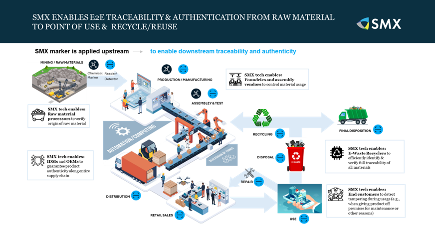 Circular Economy Enablement: SMX's solution supports the recycling and reuse of e-waste, reducing reliance on virgin raw materials and promoting sustainability.