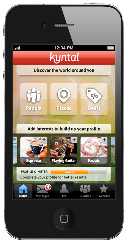 With kyntal, users discover people, places and deals based on all the things that matter to them - when they least expect it. This real-world discovery principle is part of kyntal core functionality.