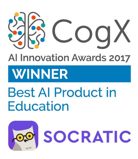 London, UK, July 6, 2017 (Newswire.com) - Socratic has won Best AI Product in Education at the inaugural AI Innovation Awards. The awards were founded by CognitionX, Market Intelligence for All Things AI, and recognize the best use of AI in specific industry sectors and technology domains, as well as applications in Social Good, Public Services and Ethics Leadership.