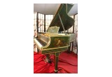 The Green Chi Piano features scenes based on Chinese gardens and landscapes, including mountains, water, trees and people. The elements convey an orderly world, with the mountains in particular reflecting chi – a life-restoring essence. Painted green, with an even border of original mahogany, the piano includes two kinds of scenes, one with two-dimensional and the other with three-dimensional borders. The beautifully linear artwork is traditional Chinese landscape painting. The underside of the piano’s lid is adorned with stylized peonies, reflecting wealth and status, as well as birds, symbolizing a happy marriage and eternal love.