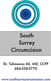 Dr Tahmeena Ali is a trusted South Surrey circumcision physician who has gained a reputation for expertise and experience. Trained as a family physician at the University of Alberta, Dr. Ali has been delivering babies and doing circumcisions on some of these babies for over a decade. Not only does Dr. Ali take her time doing the procedure; she is also a clinical lecturer at the University of Alberta, who has taught many family medicine residents and medical students.
