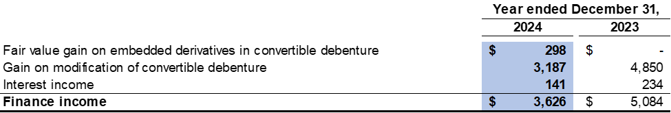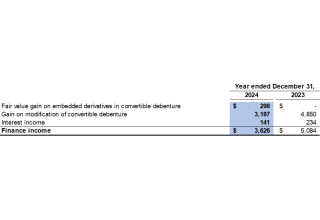 Based on the Company's valuation as at December 31, 2024, the fair value of the embedded derivatives decreased by $298 (2023: increased by $292) compared to December 31, 2023. The decrease was recorded as finance income for the year ended December 31, 2024.