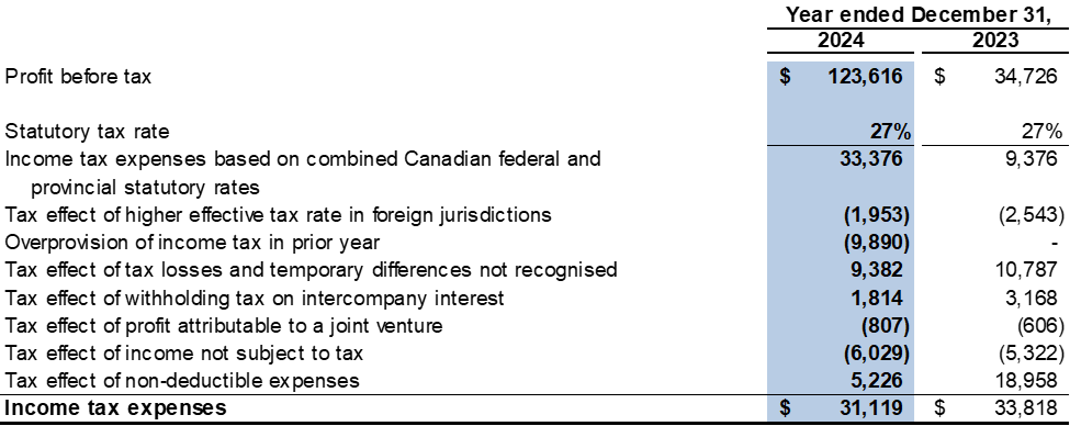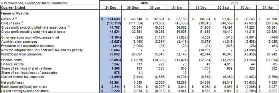 The Company recorded a $79.1 million profit from operations in the fourth quarter of 2024 compared to a $42.0 million profit from operations in the fourth quarter of 2023. The financial results for the fourth quarter of 2024 were impacted by the Company recording a reversal of additional tax and tax penalty of $48.5 million during the quarter as a result of the Revised Re-assessment Result.