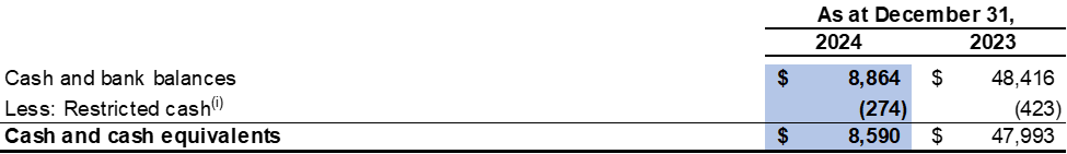 Finance costs were $6.9 million in the fourth quarter of 2024 compared to $12.3 million in the fourth quarter of 2023, which primarily consisted of interest expense on the $250.0 million Convertible Debenture.
