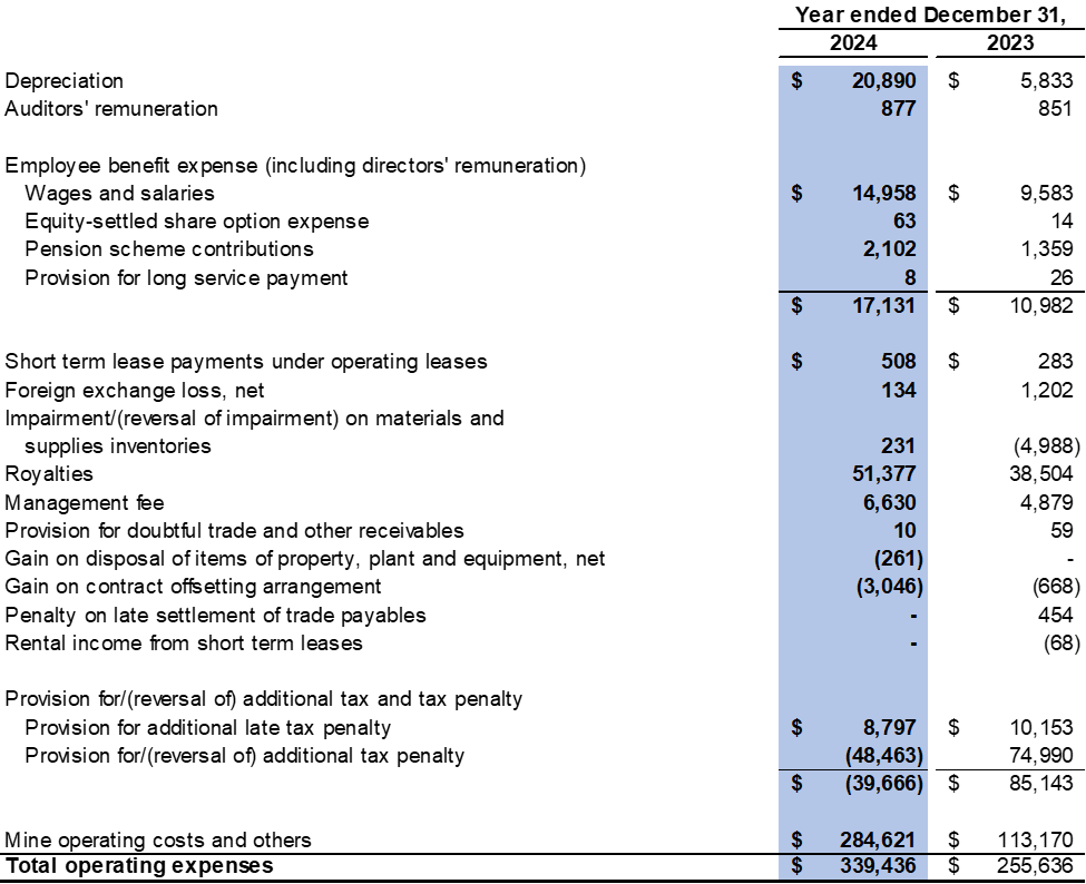 Operating Results - The Company increased the scale of its mining operations in 2024, as well as implementing various coal processing methods, including screening, wet washing and dry coal processing, which have resulted in improved coal quality and enhanced production volume and growth of coal export volume into China during the year.